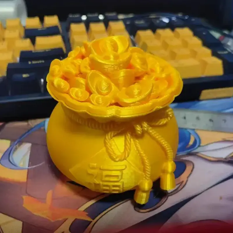 Exquisite 3D Printed Gold Ingot & Blessing Bag Ornament – B2B