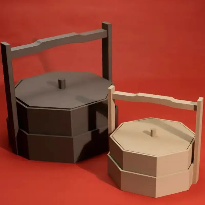 Our heirloom 3D printed candy boxes blend traditional Chinese artistry with modern manufacturing. These hexagonal treasures feature elegant Chinese knot handles with vibrant red tassels. Each box displays auspicious characters like “福” (fortune) and “柿” (persimmon, symbolizing prosperity). The hexagonal shape represents harmony and balance in Chinese culture. These boxes measure approximately 15cm across, perfect for festive treats. They hold nuts, candies, and traditional sweets beautifully. The smooth finish showcases precision 3D printing technology. Red and gold color schemes dominate, symbolizing joy and abundance. These boxes become conversation pieces at any Spring Festival gathering. They bridge traditional culture with contemporary aesthetics perfectly.